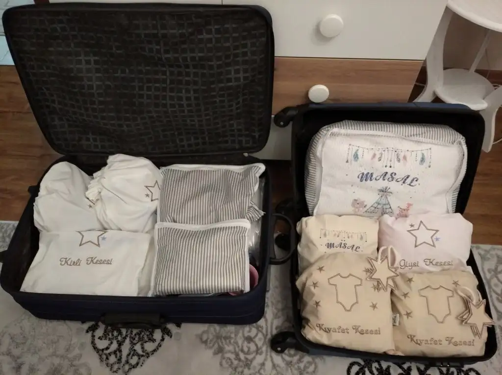 Maşallah, hiçbir detayı atlamamışsın. Allah güzel güzel sağlıkla kullanmayı nasip etsin.Arkadaşlar ben bugün hastane çantamızı da hazırladım küçük bir bavul bebişime orta boy bir bavul da kendime hazırladım aldığım keseler ve bavul organizerleri çok işime yaradı bebeğim için giysi keselerine üç tane hastane çıkışı koydum hepsinde zıbın, alt üst takım, çorap, eldiven, şapka ve penye battaniyesi var birer adet de bebek bezi ve alt açma ekledim bir keseye de fotoğraf için tütü etekli takımı koydum bez kesesine 5 adet yedek bez, alt açma bezi, pişik kremi, pamuk, ıslak mendil koydum bakım kesesine süt sağma makinesi, göğüs kapakları, kaşık biberon, mama, emzik, ağız bezi, omuz bezleri, göğüs ucu kremi koydum bir organizere fotoğraf çekimi yastığını bir adet örgü ve bir adet nohut battaniyesini ve müslin bez koydum diğer organizere 1gecelik takımı ve 1 pijama takımı, 2 adet lohusa kilodu ve emzirme sütyeni, terliğimi, iki adet çorap bir adet havlu koydum bir keseye tarak, ayna, lohusa taçlarım, makyaj malzemesi, lohusa pedi, göğüs pedi koydum bir keseye süt yapması için hümana çay, malt içeceği ve atıştırmalık bebe büsküvisi ile kuruyemiş koydum hepsinin son kullanma tarihleri 2022 ayrıca tansiyon ölçer, ateş ölçer, elektirikli cezve , kağıt havlu, pilastik çatal kaşık, kağıt bardak, tabak ve çöp poşeti koydum ve tabi puset ve emzirme yastığıne çok detay varmış işinize yarar diye buraya yazayım dedim ben de hep izlediğim videolardan yola çıkarak liste yapıp ona göre hazırladım çok şükür benim bir işim kalmadı bundan sonra inşallah bir sıkıntı yaşamadan keyifle geçer zaman