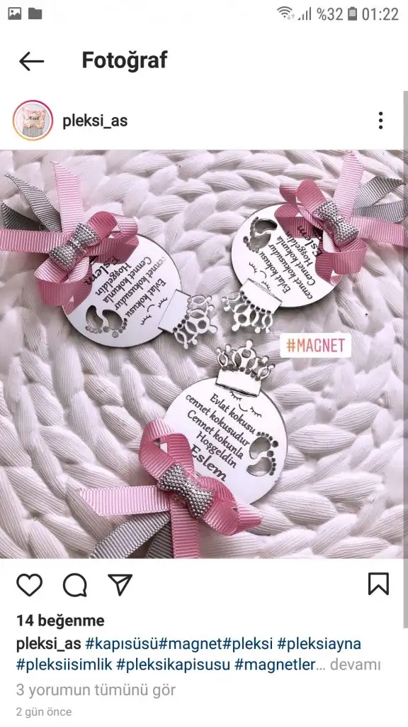 Ay olurmu ilk kızımda hatırlıyorum da magnet olayları ilk çıktığı seneydı 2010 yılı,🙈 11 yıl gecmıs. Bide domuz gribi cıkmıstı o yıl, ay nasıl heves ediyorum, ozaman örgüden küçük elbise patik içine seker koyulup mıknatıslı dagıtılıyordu. napsam diye üzülürken annemler komsular üzülmeyim diye birleşip evlerde olan yünlerden kendimiz örmüştük, nasıl mutlu olmustum🥰 insanlara kendi ördükleri süsleri hediye etmiş oldum ama ozaman ki imkanlarda süperdi.
