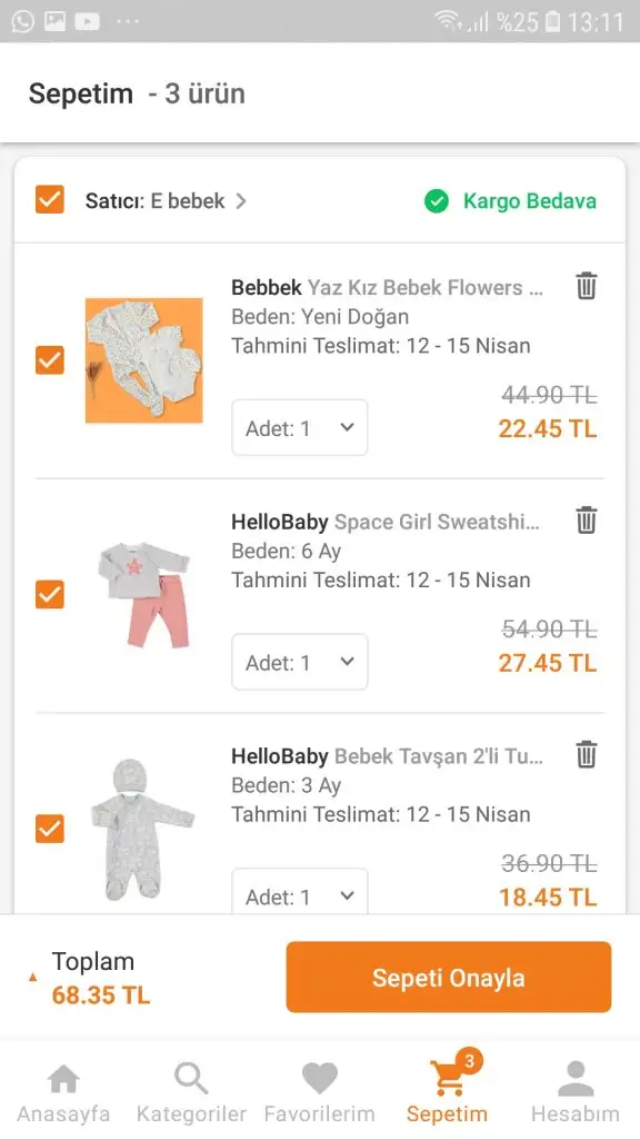 Evet fiyatları ćok uygun kalitesi nasıl acaba e bebek de genelde güzel oluyor herşeyBunlarda ebebek . Asiri uygun geldi bana fiyatlari