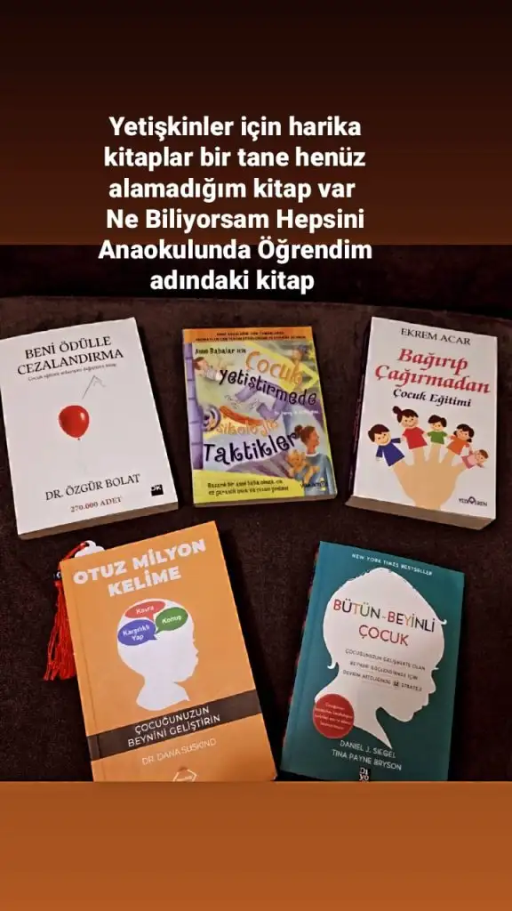 Bunlar da benim okuduğum ve okumaya devam ettiğim kitaplarBen bezsiz bebek büyütme hevesindeyim o yüzden tuvalet iletişimi diye bir kitap okudum. Ama genel olarak bebeklerin tuvalet ihtiyacını anlamak açısından faydalı bir kitap, şahsen tavsiye ederim. Bir de yetişin çocuklar diye bir kitap okudum onun da bebeğin özellikle zeka gelişimi açısından faydalı noktaları olduğunu düşünüyorum.