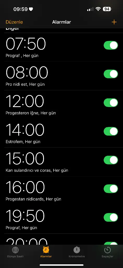 00.00 a doğru gidiyor alarm bu şekilde yoksa unutuyorum içtim mi içmedim mi diye. Bi de düzenli almak önemliymiş hepsini. Boş saattimiz yok ben de Gevitamax kullanıyorum Bülent Tıraş tüm hastalarına bu takviyeyi veriyor. Benim göğüs ağrım çok yoğun ama ilaçların yaptığını biliyorum. Senin embriyo kaliten neydi ? Test yapmamana çok şaşırdım ben düşünüyorum şu an yapsam çıkar mı acaba diye kendimi tutuyorum çıkmayacağını bildiğimdenAlıştık vallahi hemşire ol demişlerdi istememiştim şimdi kendi hemşiremiz olduk bir yandan. Artık şu ilacı içtim mi diye kendimi sorgulamaya başladımyaaa inşallah pozitifleri görürüz isteyen herkes kavuşur bebeklerine. Yemek yiyorum ama yemem gerektiği için neden böyle oldu bilmem dediğim gibi başkada belirtim yok benim. Ne göğüs açıyor nede başka şey. Bende 66’dan 65’e düştüm. Birde takviye alıyorum balık yağı filan. Folik asit vitaminler. Alarm kurar olduk ilaçlar için. Senin ne zamandı test günün ? Bu arada evde filan hiç test yapmadım.