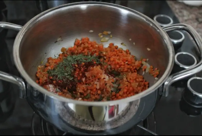 Rendelediğimiz soğan ve ezdiğimiz sarımsakları (ben rendelemedim şefle doğradım) tereyağda pembeleşinceye kadar kavuralım. Rengi dönünce salçamızı ilave edip birazda bu şekilde kavuralım. Üzerine yıkadığımız baklagilleri ekleyelim bir kaç tur da baklagilleri kavurup tuzunu baharatını ekleyip sıcak suyunu ilave edip pişmehe bırakalım.