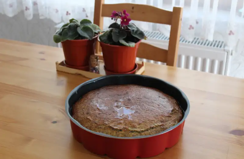 İşe öncelikle şerbeti yaparak başlayalım ardından yumurta ve şekeri köpük köpük olana kadar çırpıp diğer malzemeleri de sırasıyla ekleyip bi kaç tur daha çırpalım. Önceden ısıttığımız fırında 170° pişirelim. Fırından çıkardıktan 10-15 dk sonra şerbetini dökelim. Şerbetini çekip tamamen soğuyunca 3-4 saat buzdolabında dinlendirerek servis edebilirsiniz.