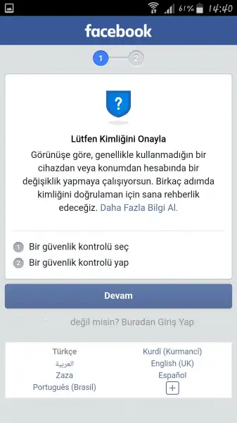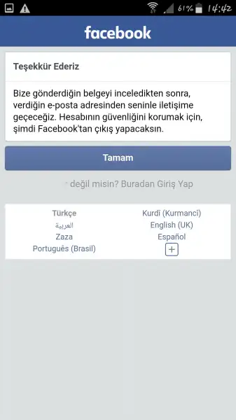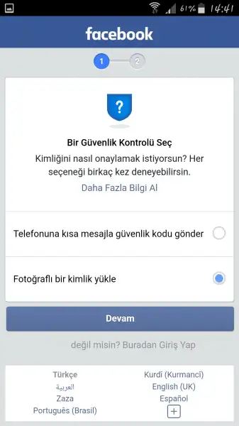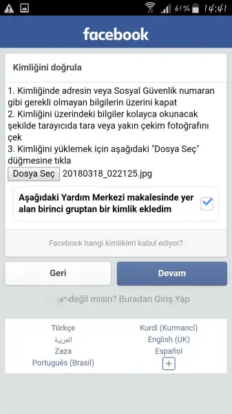 Facebook hesabımın kimin girdiginden şüphe etmis o yüzden facebook un bana ait oldugundan emin olabilmek icin sifreyi dogru girdigim halde kabul etmiyor kimlik istiyor ispatlamam için hesabin bana ait oldugunu. Fakat kimligimde evlilik soyadim yaziyor doğum tarihimde farkli o yuzden hesabin benim oldugunu kabul etmiyorFacebook’a girmek için bütün gerçek kimlik bilgilerinizi mi veriyorsunuz anlamadım? Ne alaka bekarlık soyadı? Facebook evlendiğinizi nerden biliyor anlam veremedim?