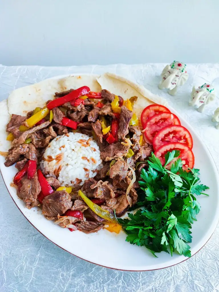 Yarışmaya et fajita ile katılım sağlamaktayım birazdan da oturup yiyeceğiz bakalım.