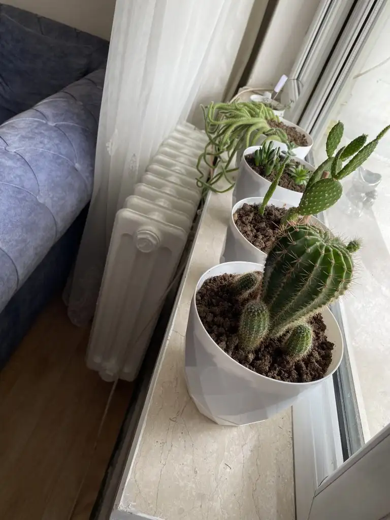 Kaktüs sarmaşık ve bambum var 1 senedir çiçeklere merak sardım taşındığım yerde de deve tabanı monstera alacağım 🤗🥰