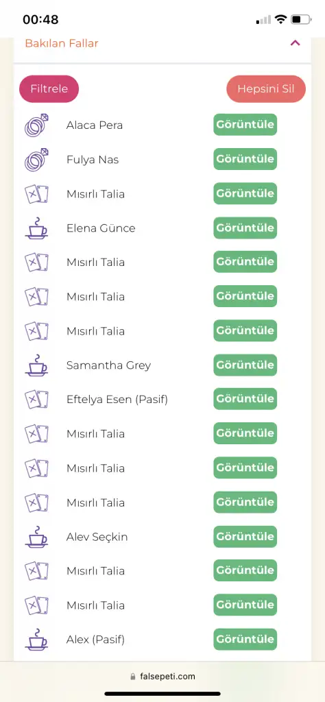 Taliaciksaydi söylerdim . Çıkmadı . Birbirinin zıttı iki yorum yaptı. İlk falda 20 günlük vade verdi bir yıl oldu. İlk falda adam gelcek seni istiyor dedi üçüncü falda kız sana buri geliyor tipi şöyle şöyle sen bu adamla evlencen . Öbürü gelmicek dedi. Bu nedir ya insanla dalga geçer gibi. İlk falda çok inandım çok güvendim kesin biliyor dedim ama size yemin ederim üçüncü falda soru bile sormadım o derece tutarsizdi. Keşke almasaydi falimi. Fulyanin olumsuz konuştuğu olay olumlu oldu bu arada. Kimse burda birilerini kötülemek yada iyi göstermek için yorum yapmıyor herkes kendi deneyimini paylaşıyor. Ben açıkçası hak edene hak ettiği deger verilsin diye insanlar kandirilmasin diye üye oldum . Fal sepetinde de çok şişirme yorumlar yapılıyor. Geçen seneden beri tonlarca fal attım. Neyin ne olduğunu en azından kendi payima dusenle tecrübemle aktariyorum 🙏