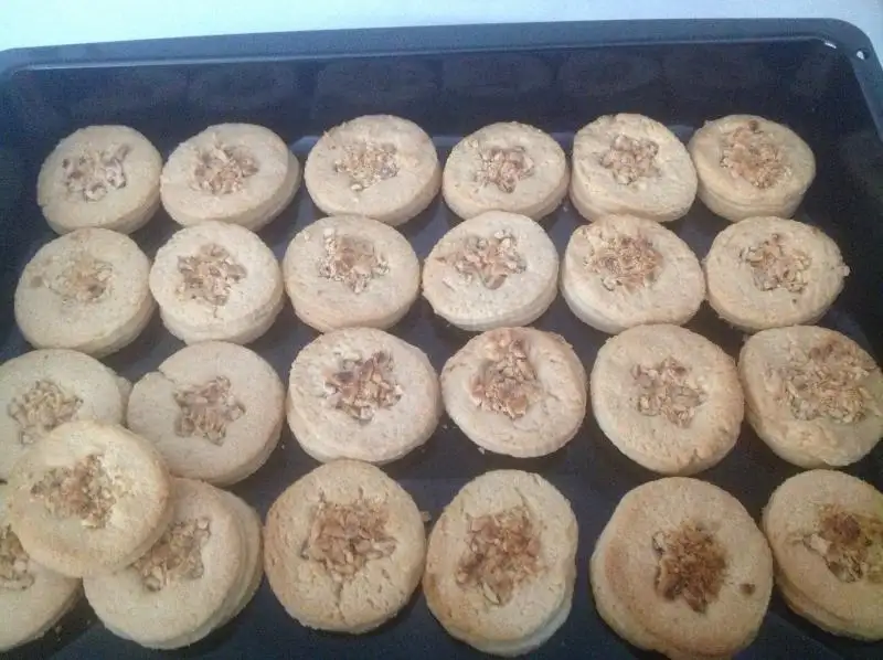 - Elinizi hafifçe unlayarak her parçayı yuvarlayın. Daha sonra 1 çorba kaşığı margarinle yağlanmış fırın tepsisine dizin. Önceden ısıtılmış 180 derece fırında üzerleri pembeleşene kadar pişirin.