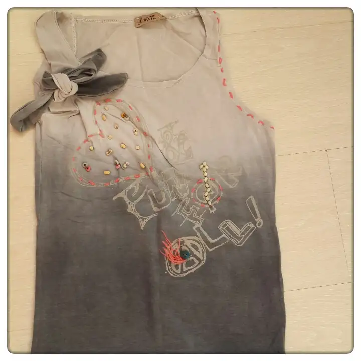 Gri kolsuz belden ve yaka dan bağlamalı boncuk süsleme li badi