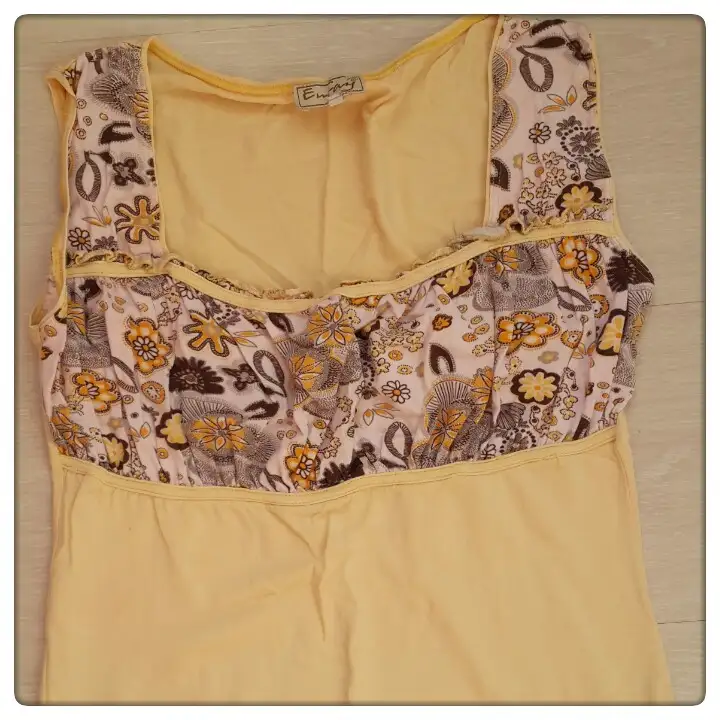 Sarı göğüs kısmı çiçek desenli sıfır kol badi