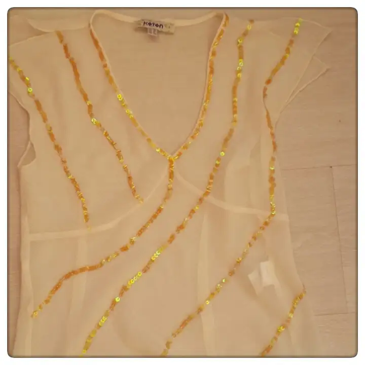 Koton krem renk önünde pul işlemesi olan kolsuz tül tarzı badi