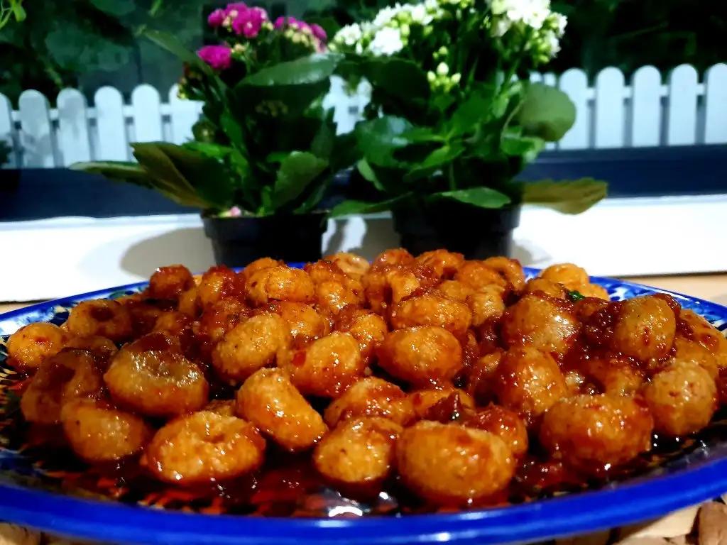Elimizi ıslatarak hamurdan fındıktan biraz daha büyük parçalar koparıp yuvarlıyoruz ve ortasına parmağımızla hafifçe bastırıyoruz.Yuvarladığımız hamurları birbirine yapışmaması için unlanmış bir tepside biriktiriyoruz...Hamur bitene kadar bu işlemi yapıyoruz..