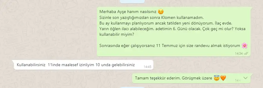 Doktorum çok güzel açıklama yapıyor. Whatsapp'tan da sorularımı cevaplıyor sağolsun.