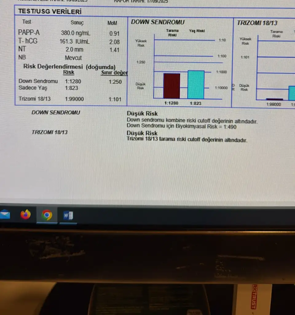Canım benimde risk çok çok düşüktü ama değerlerimden biri de çok düşüktü. Perinatolojiye gittim detaylı usg bakıldı. Doktor bir sorun göremediği için kararı bize bıraktı. Tüm her şeyi normal olduğu için yaptırmadık. Perinatoloji şeker tansiyon çıkabilir hamilelikte bazen bu yüzden oynuyor değerler demişti. Dikkatli ilerliyoruz 19+4 üm. Şükür şuanlık bir sorun yok hala.