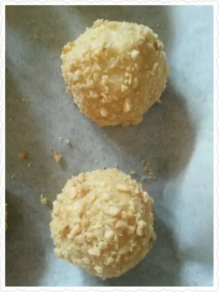 yuvarlamış olduğumuz hamurları robotto çektiğimiz fındık içine buluyoruz ce tepsiye diziyoruz..