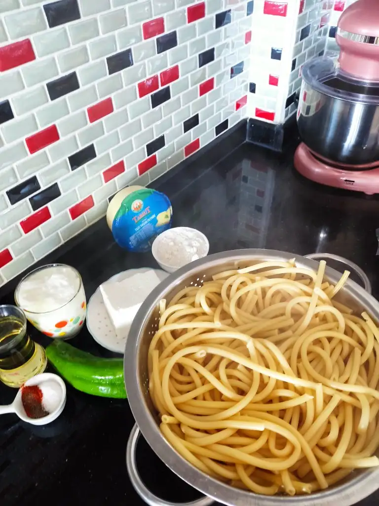 Haşlanan makarnamızı süzüyoruz.