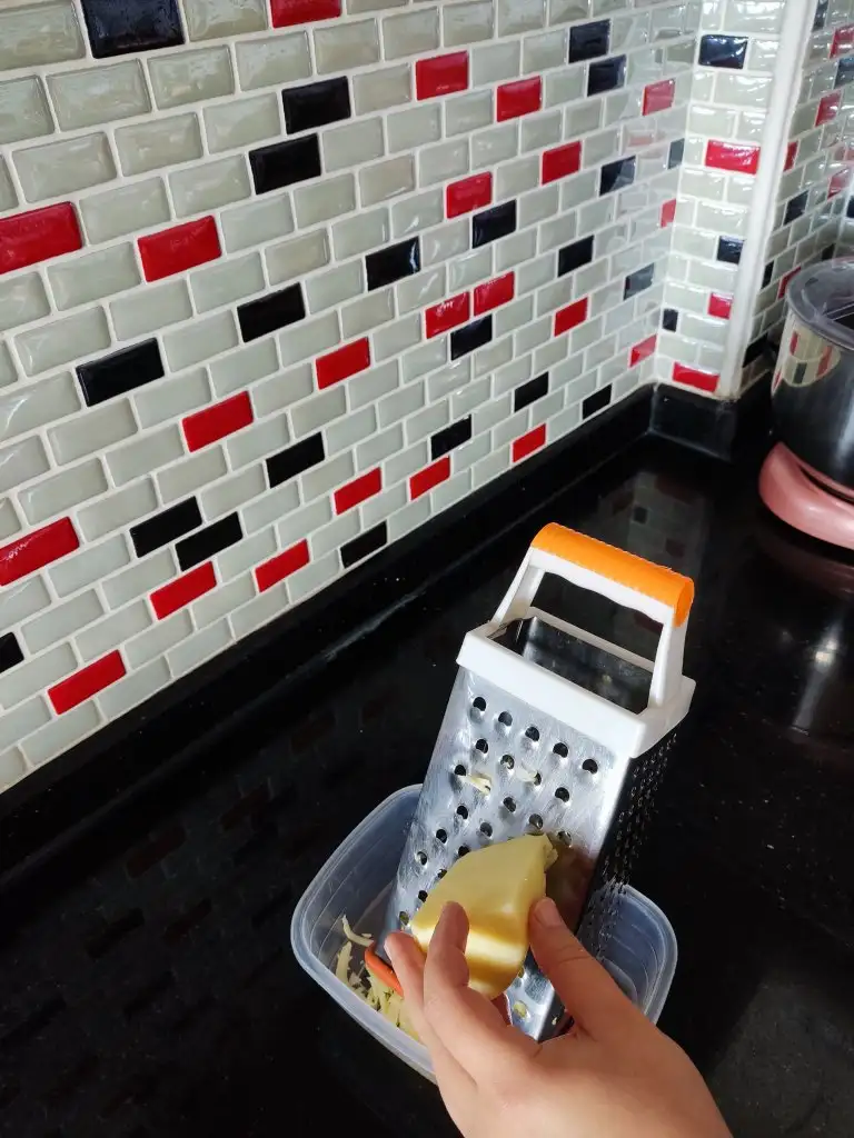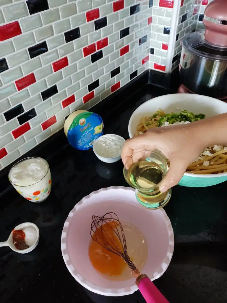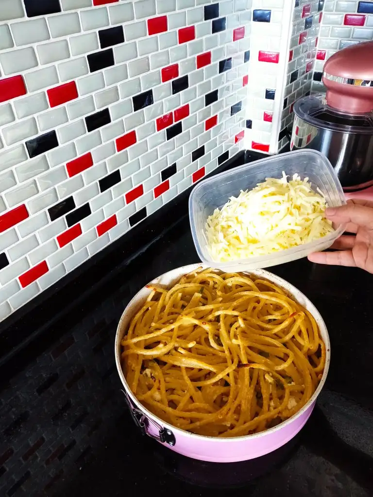 200 derece fırına veriyoruz efendim. Bu esnada kaşar rendeliyoruz.