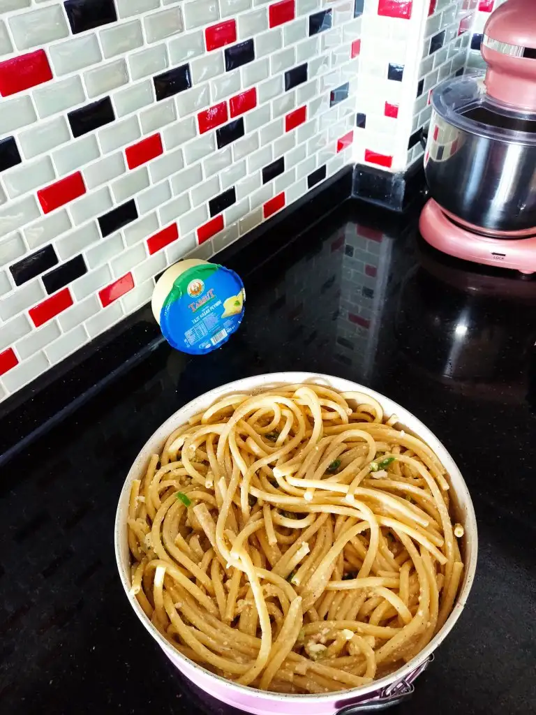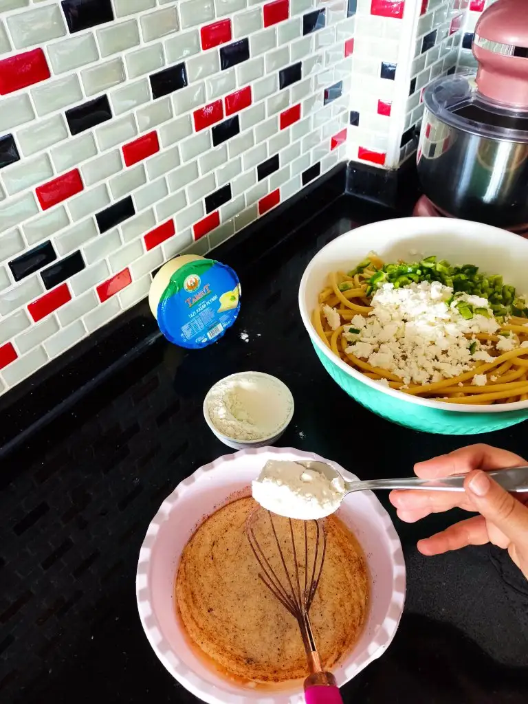 Hazırladığımız bu karışımı makarnamızın üzerine ekliyoruz