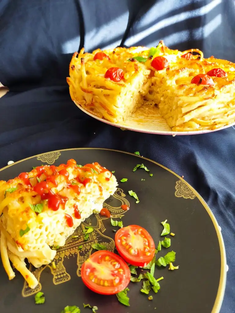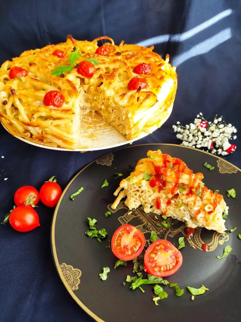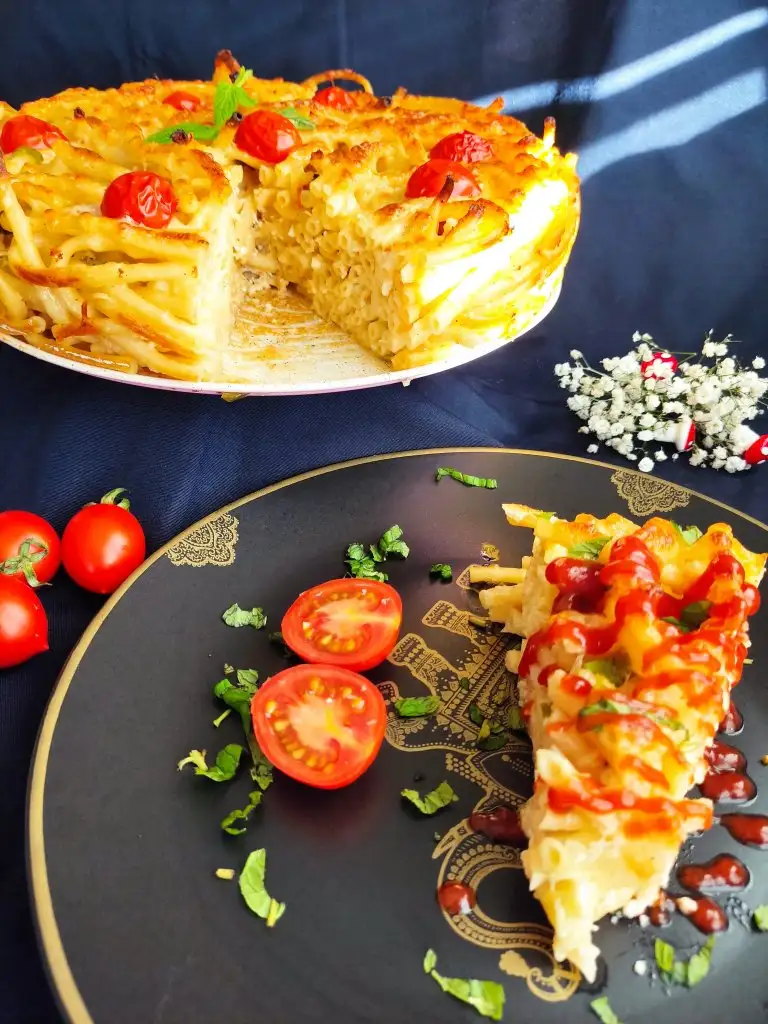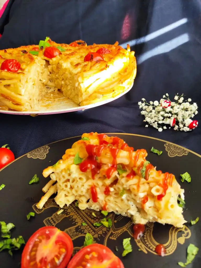 Fırından çıkardığımız makarnamıza kaşarı ekliyoruz. Ben görsellik olsun diye çeri domates de kullandım.