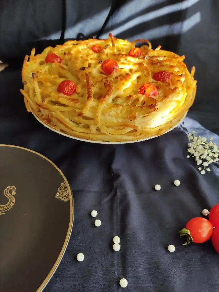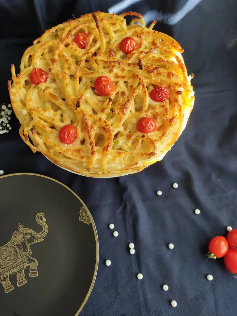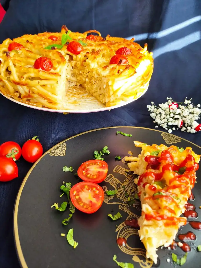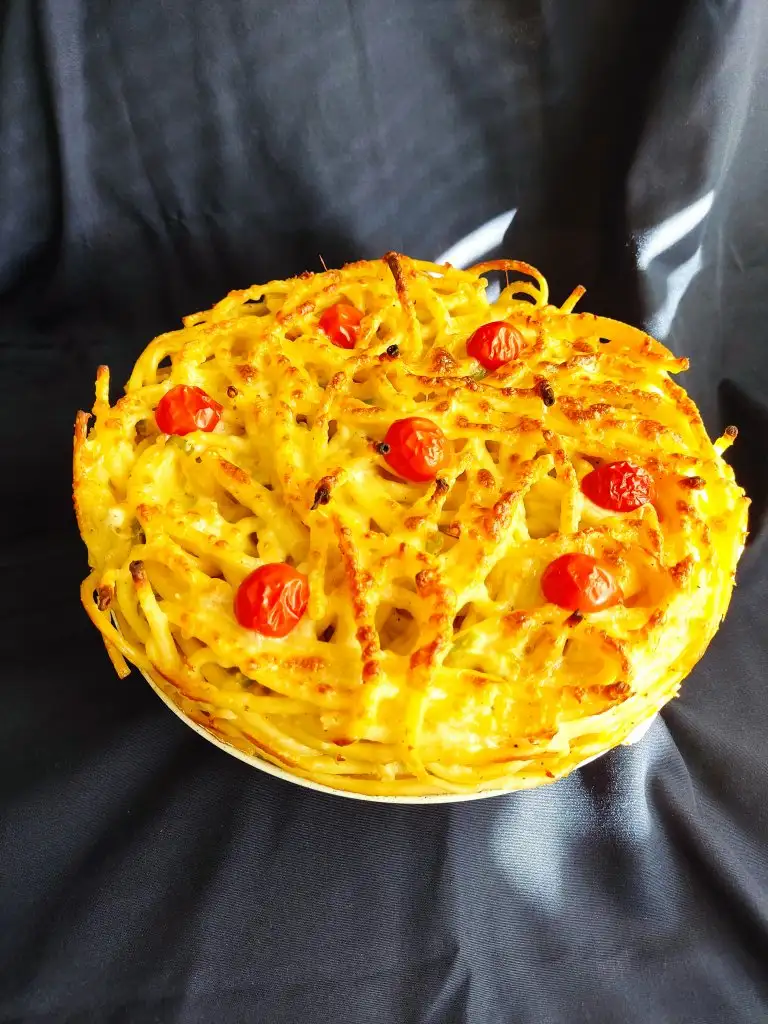 Fırından çıkardığımız makarnamıza kaşarı ekliyoruz. Ben görsellik olsun diye çeri domates de kullandım.
