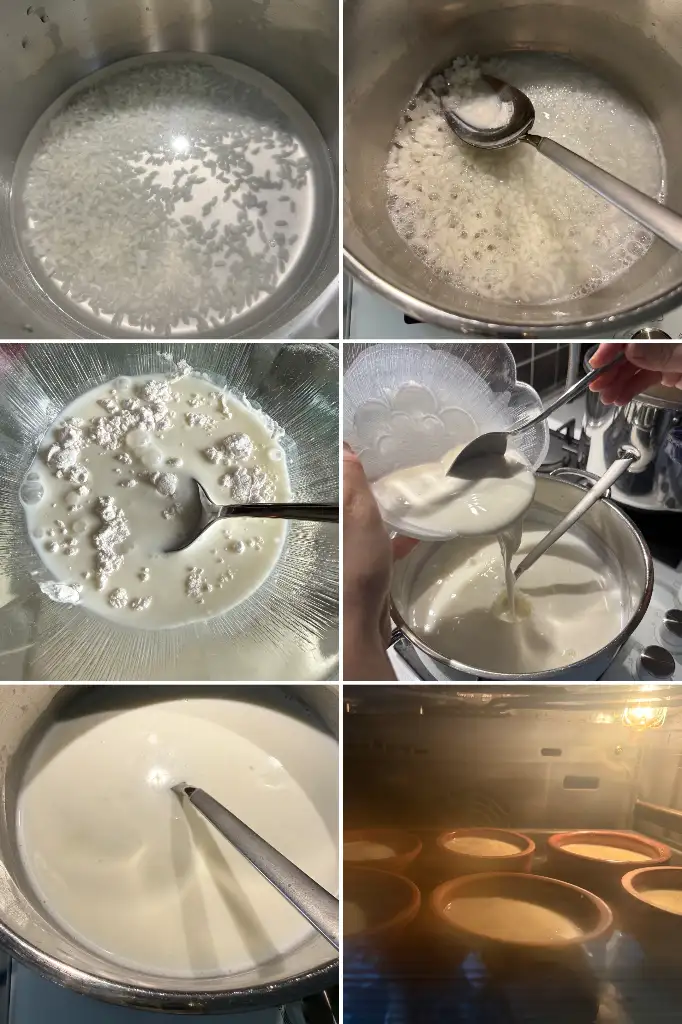 Kaynayan pirinçlerin üzerine şekeri ve nişastalı sütü ekleyelim. Ara ara karıştırarak karışım koyulaşana kadar yaklaşık 10 dakika pişirelim.
