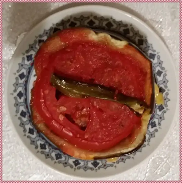 kalan 6 tanenin üzerine domates ve biber konulmaz onlar yumurtalı ve kaşarlı yapmak için kullanılacak, tarifleri aşağıda, borcam ön ısıtma yapılmış fırında 180 derecede 65 dk pişirilir ( tek çeşit yapılacaksa hepsine domates konulur ve 75 dk pişirilir)