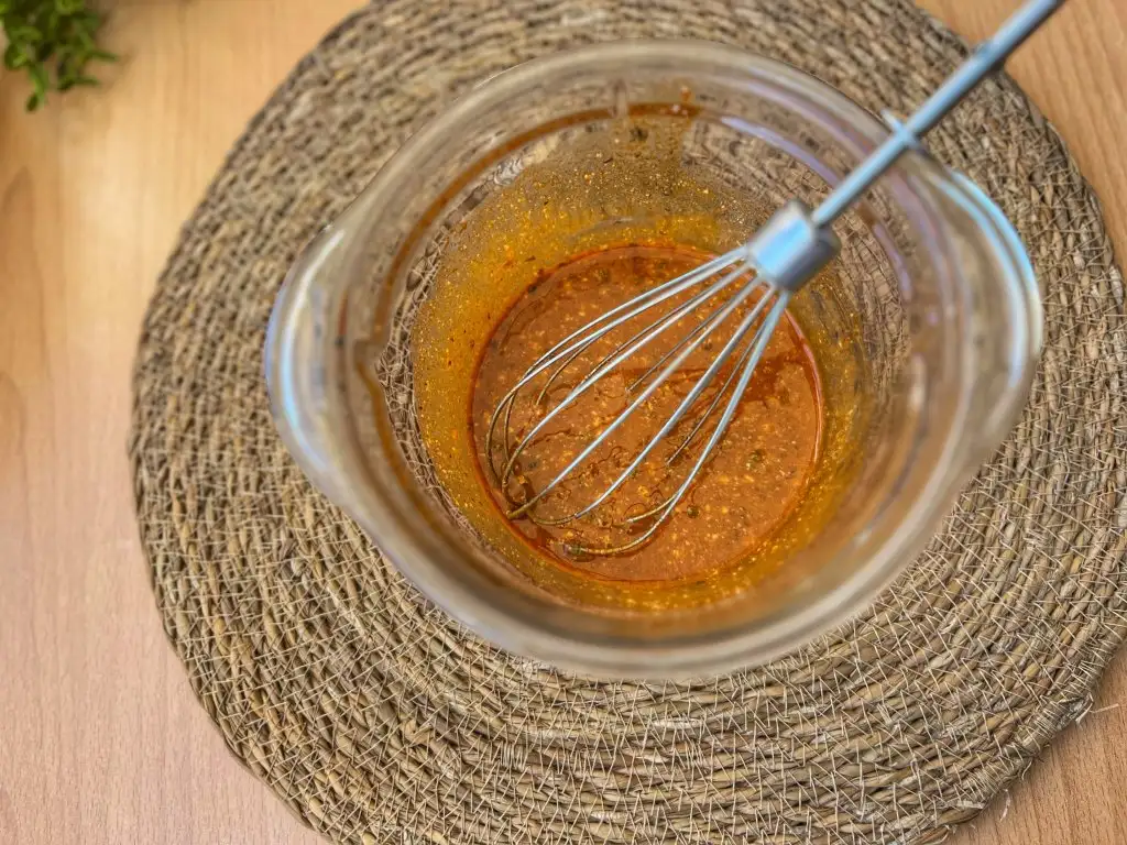 Bir kasede sosunu hazırlayalım. Tüm malzemeleri karıştıralım