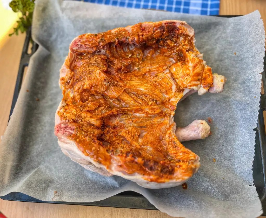 Tavuğu tepsiye alıp ilk iç kısmını fırça ile soslayalım.