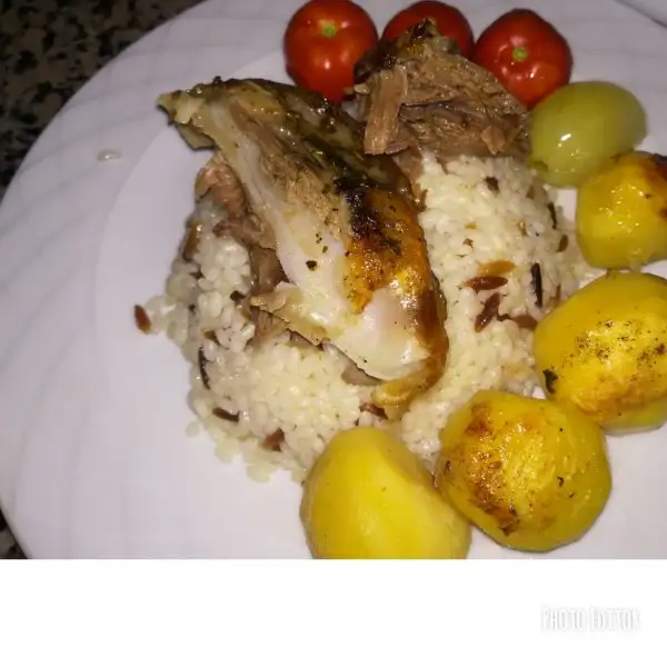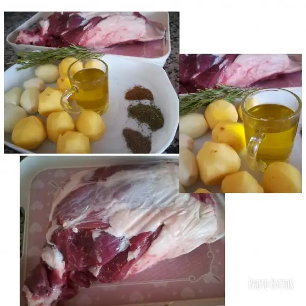 Yarım saat sonra fırından çıkartıp zeytinyağı üzerine gezdirip ....patates ,sarımsak,soğan, baharat ve tuzunu ekleyip tekrardan fırına verdim aynı sıcaklık ile yaklaşık 45 dakika daha pişirdim ....