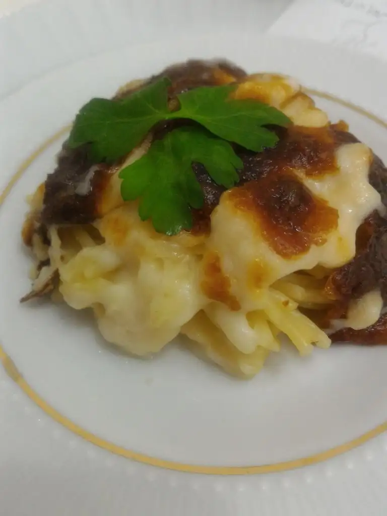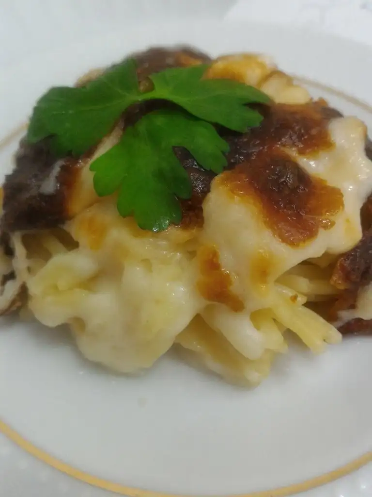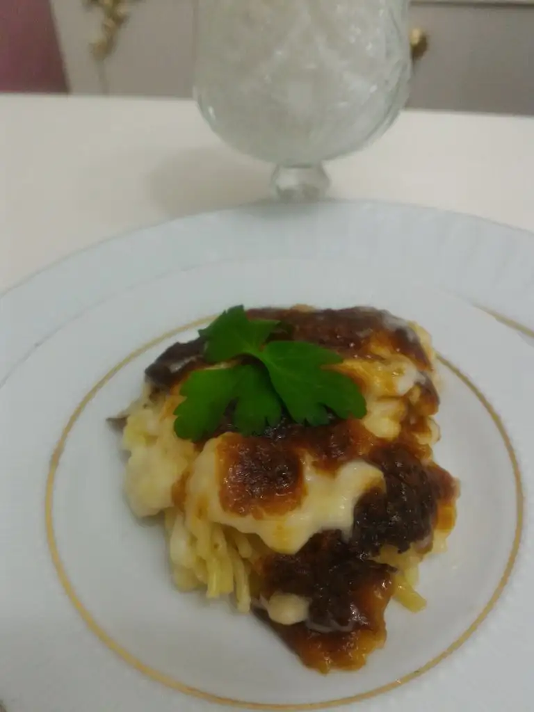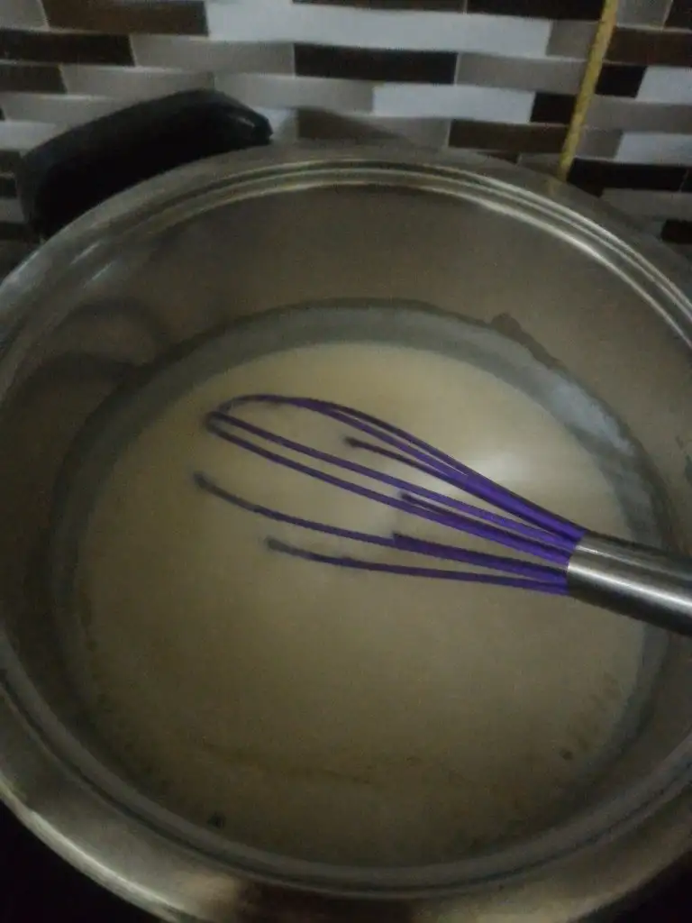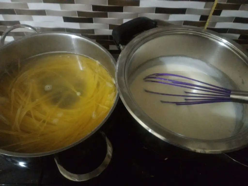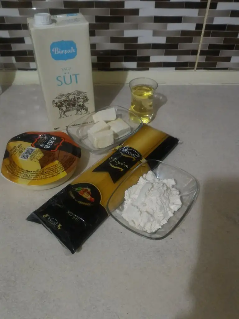 - O haşlanırken beşamel sosumuzu hazırlıyoruz. Tüm malzemeleri küçük bir tencerede muhallebi kıvamına gelip fokurdayana kadar orta ateşte pişiriyoruz.