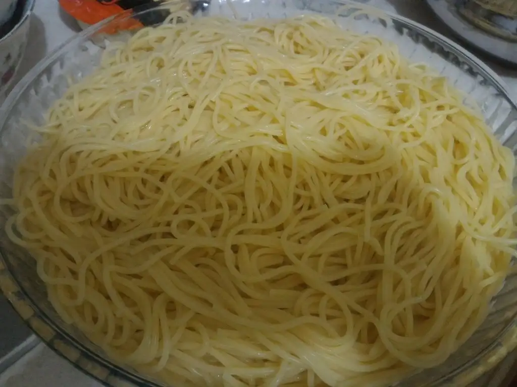 - Daha sonra makarnamızı süzüp borcama yerleştiriyoruz.