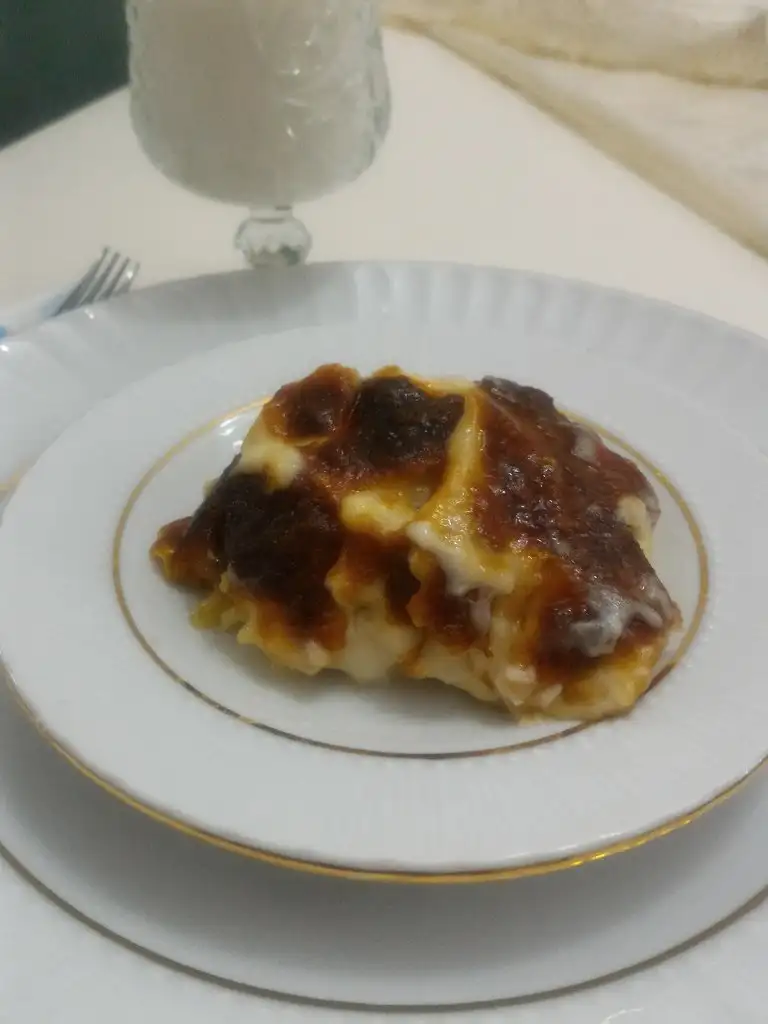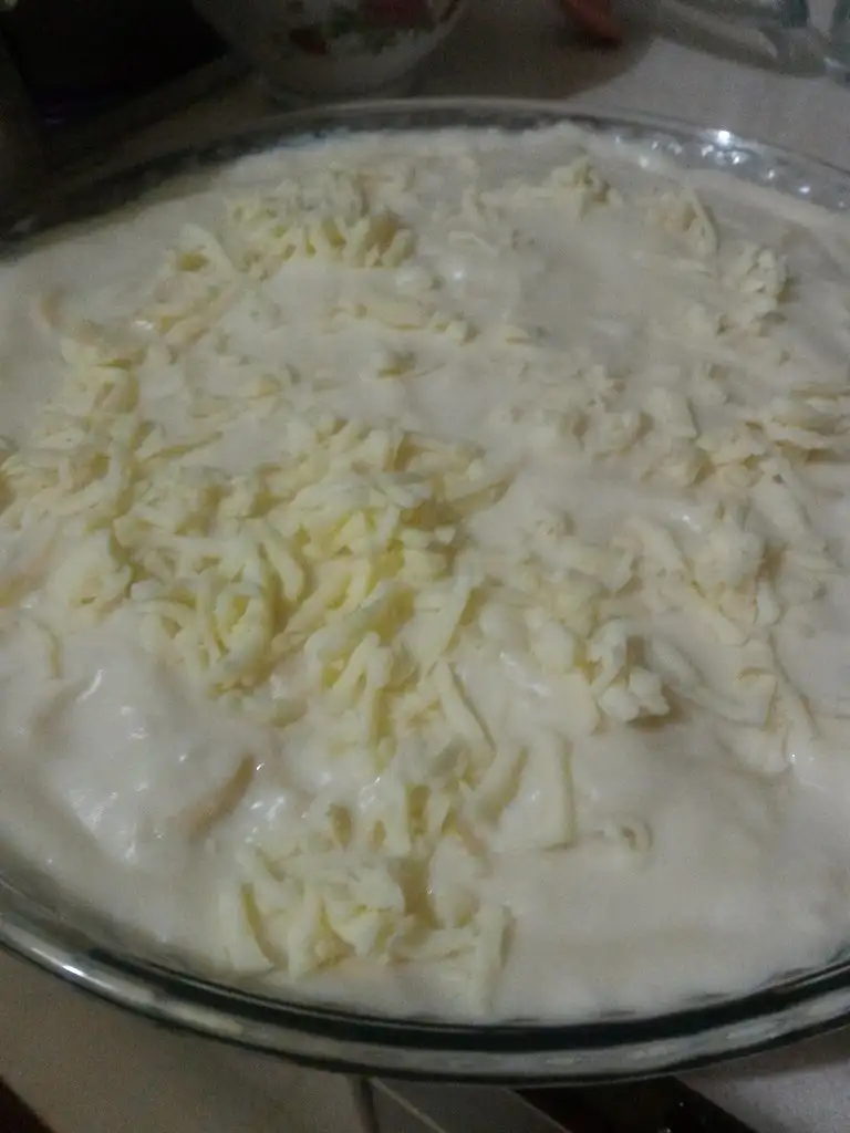 - Daha sonra beşamel sosumuzu üzerine gezdiriyoruz.