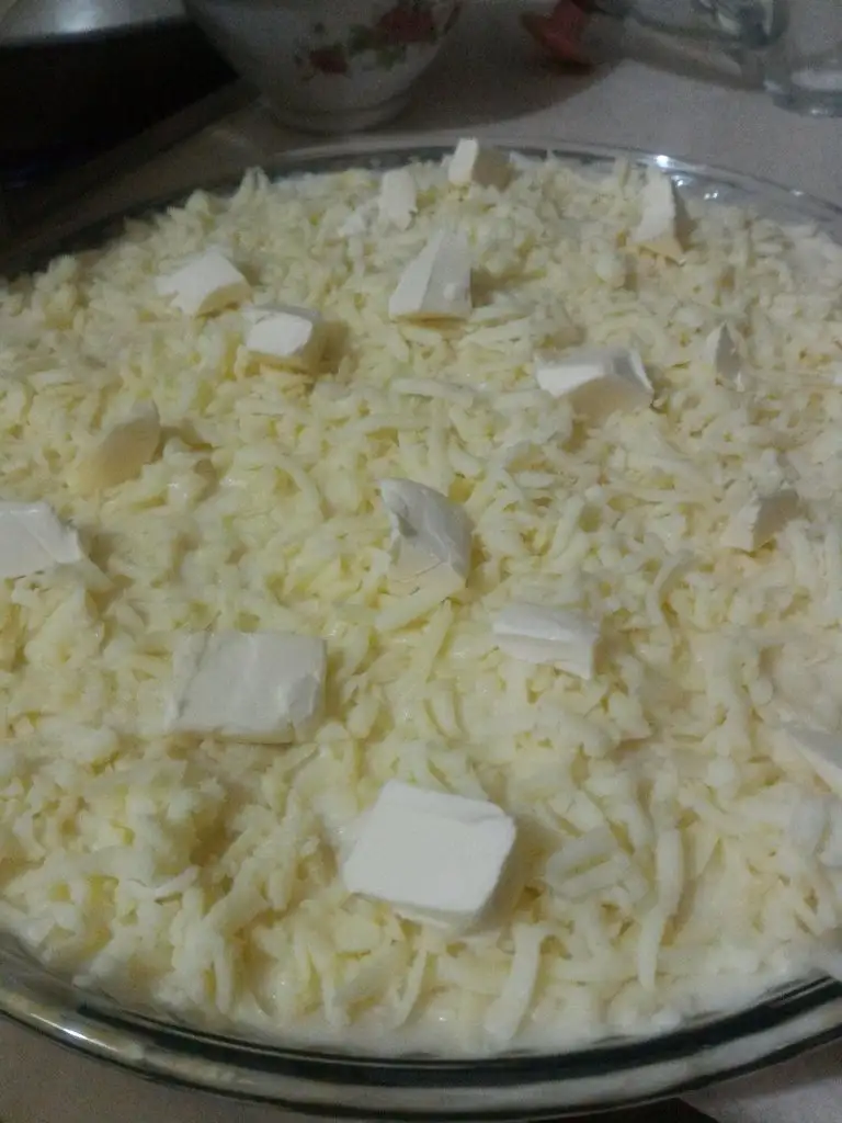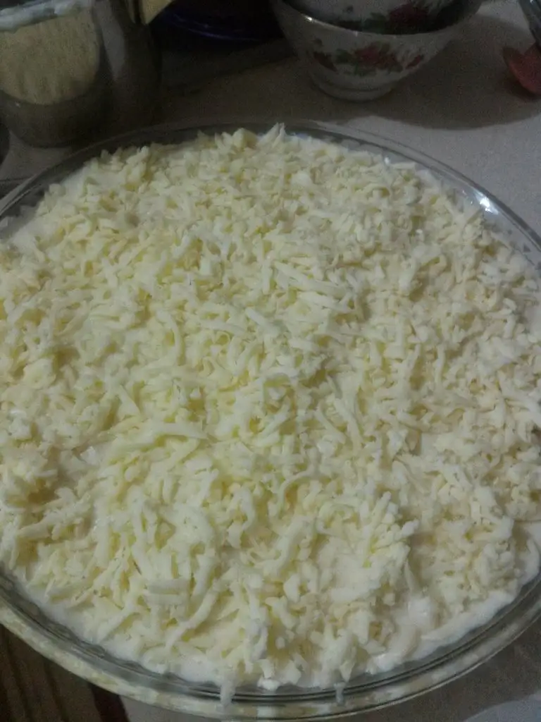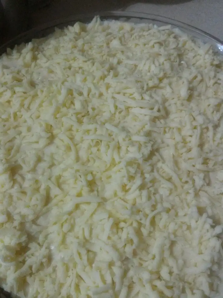 - Kuru bir yer kalmamalı. Sonra üzerine rendelenmiş kaşar peynirimizi serpiyoruz.
