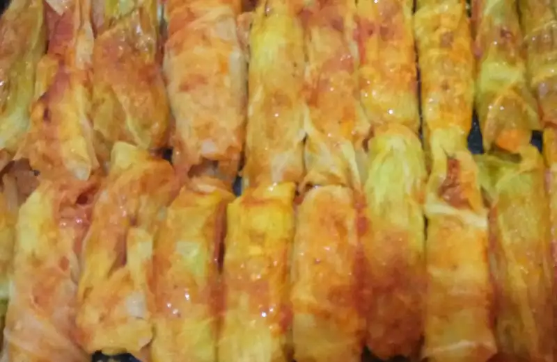 Tugbisimm ellerinden opureemMerhaba hanımlar size harika bir lezzet olan fırında patatesli lahana sarması tarifi vereceğim :)
