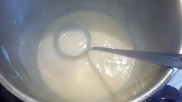 Bir kapta nişasta, yumurta sarısı ve 1 çay bardağı soğuk su karıştırıp, tenceremize yavaş yavaş karıştırarak ekliyoruz.