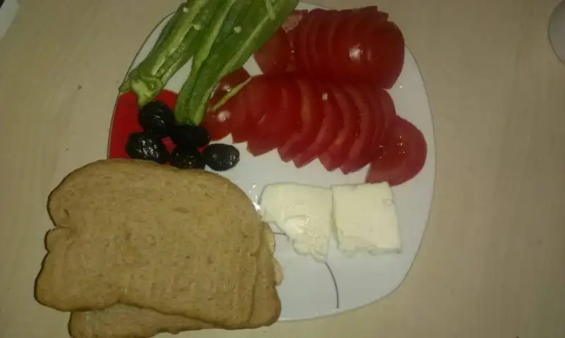 Bugun sabah 2 dilim borek 1 kurabiye yedim oglen de ekmegi abartim bu yuzden aksami salatayla gecistiricem yarin sabah mukemmel bir gune uyanicam