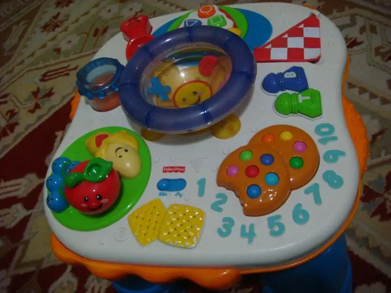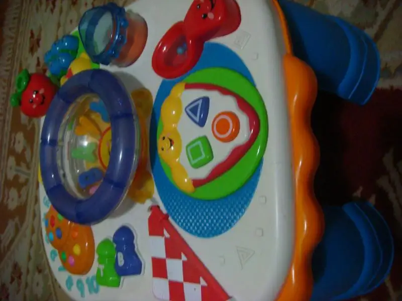 fisher price aktivite masası---- gerçekten çok kullanışlı ve bence lüzumlu bir oyuncak tüm işlevleri çalışıyor sadece biraz yıpranma var ortadaki tabağın çevresinde olan harfleri ben sildim çünkü oğluşum ağzını oraya dayıyordu hep ben de boyasından zarar görsün istemedim fiyatı 70 tl