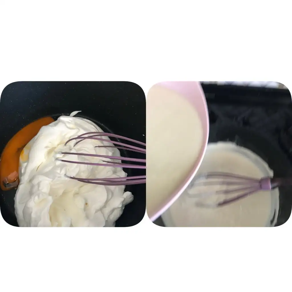 Şimdi tencereye süzme yogurt ve yumurtayı alıp altını açalım.