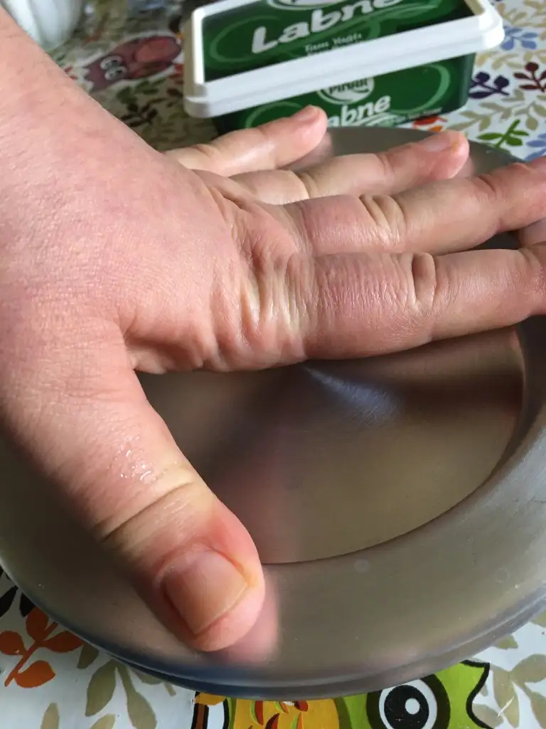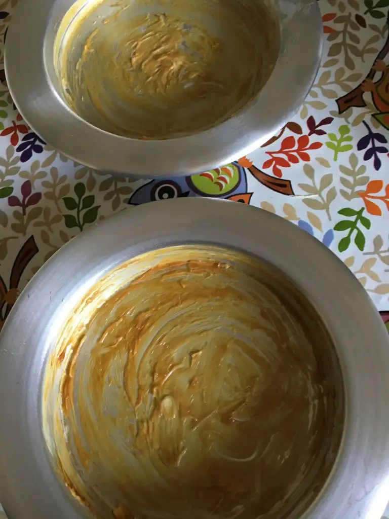 Künefe tabaklarımızı bir parça tereyağı ve pekmez ile sıvıyoruz.
