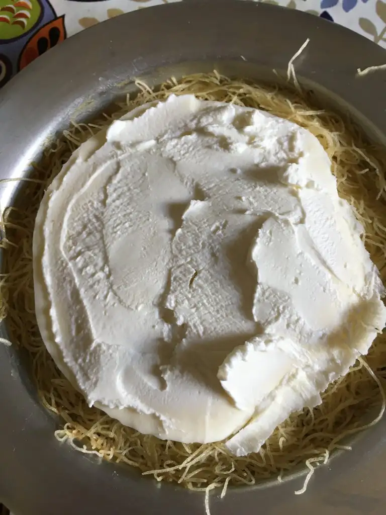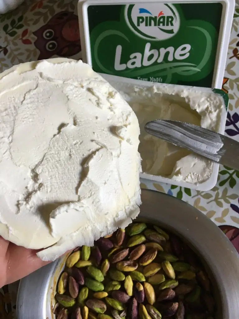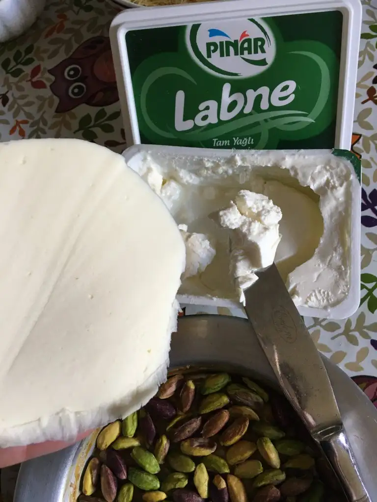 Künefe peynirimize, kalın bir tabaka Pınar Labne sürüyoruz.