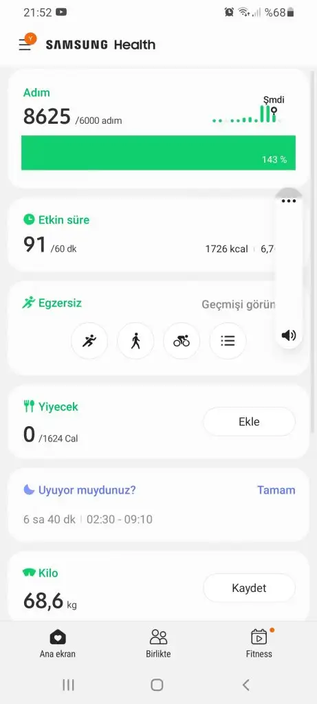 Toplam=225p 2litre su devam ediyorum aslında adım daha fazla ama tel sürekli üzerimde olmadığı için adım sayilmiyo