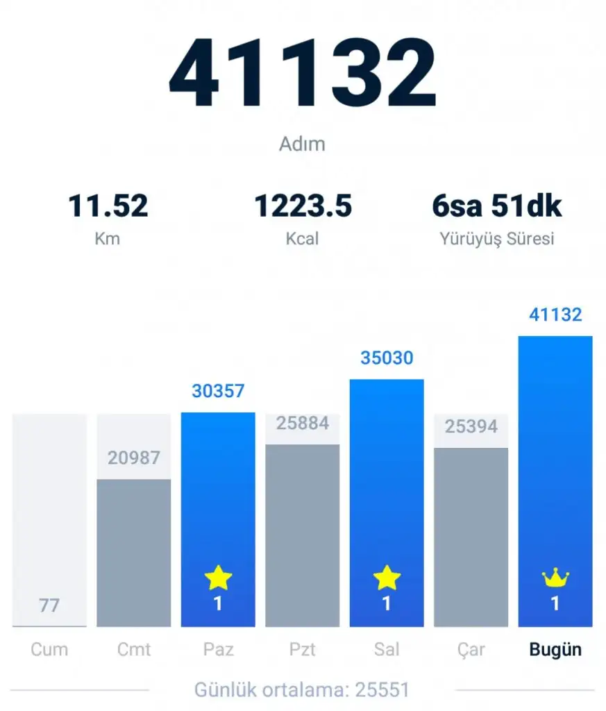 Benim pilim bitti kızlar en son akşam çıkmadan önce 10 bin adımdaydım. 20 bin hedefledim ama maalesef çok yoruldum tek yürüsem daha fazla dayanırdım ama çocuk gözetmek yordu beni