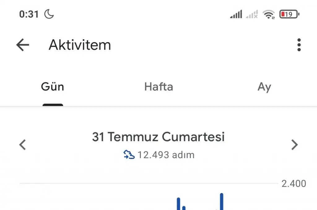 Adimin icinde merdiven cikma, tempoli yuruyus arada bir kosma var ama onlari tek tek ayri hesaplayamiyorum.