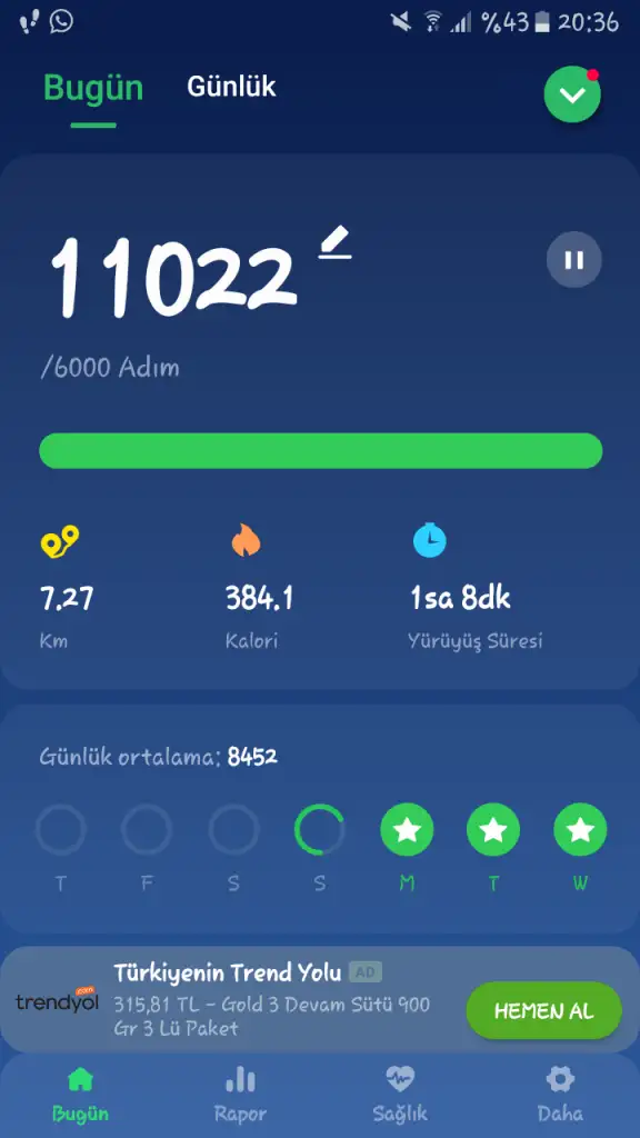 2 lt suyumu tamamlarim yiter.