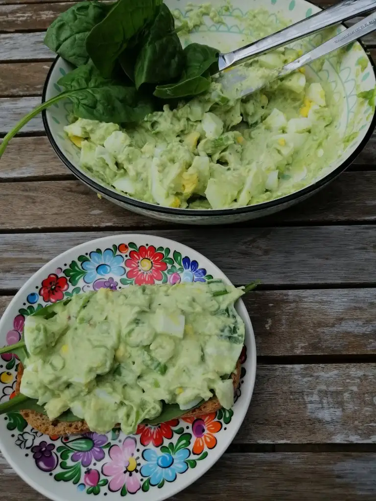 1 avakado, 2 yesil sogan, 1 yk kadar surulebilir peynir, 2 haslama yumurta ile surmelik bir karisim hazirladim,