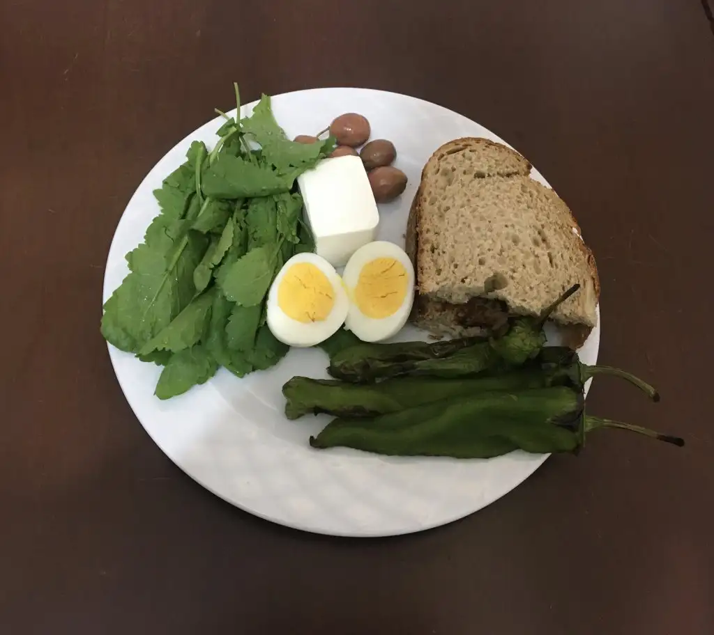 13:00 yumurta, zeytin, peynir, çay , bir dilim ekmek