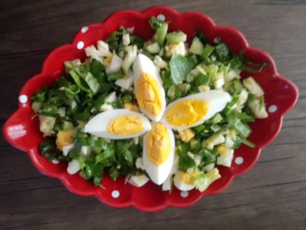 İki haşlanmış yumurtanin sarısı çocuklardan bana arta kalan kendime yapmaya üşendim