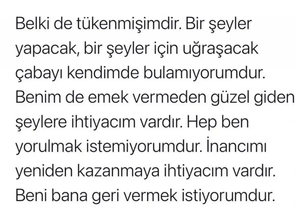 Kendin için yaptığın tek bişey söyle hayata dair ,varsa tabi ? Bende yok !!!!Bazen tükenmiş hissediyorum ya, dayanacak gücüm yok diyorum.. neyse aglamicam![]()