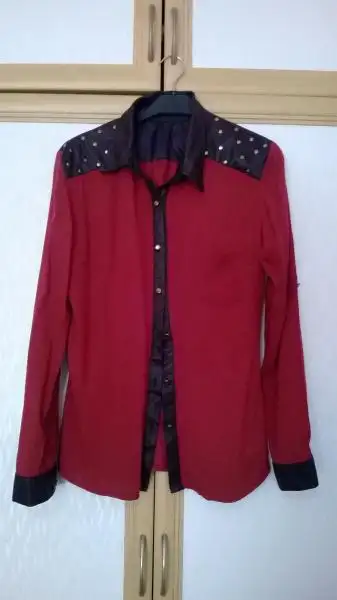 bordo renk canım gömlek 38 beden 15 demişim ama 10 lira olur oda yakasının altında kalan kısımdaki zımba düşmüş bitane ama dediğim gibi yaka altında kalıyor gorunmuyor...