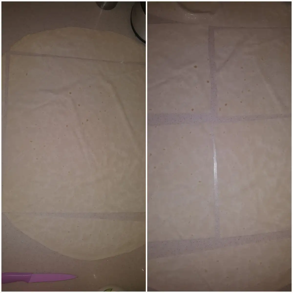 Yufkamizi seriyoruz ortada dikdortgen kalacak sekilde yanlardan kesiyoruz..